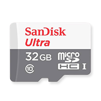 Each Afidus has a 32Gb SanDisk Ultra in box. Sandisk has many sizes